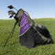 Go to the golf course in style with this golf towel. It has royal purple with white polka dots, the name in a script font, and has a black base. Perfect for mother's day, a birthday gift, or for a teen girl golfer. Personalise the name in the template field.