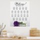 Elevate the elegance and sophistication of your wedding reception with this stunning 22 table seating chart. The modern floral design boasts a striking deep royal purple rose resting horizontally, elegantly reflecting in a serene pool of water. The chart accommodates up to 220 guests with a classic layout of 10 seats per table. The title is written in stylish calligraphic script, welcoming your guests and guiding them to their seats. The bottom section provides ample space for the couple's names and wedding date, adding a personal touch to your decor. This seating chart exudes romance, grace, and glamour, and is the perfect way to ensure a smooth and stylish seating arrangement for your guests.