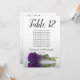 These beautiful table number cards will make it easy for your guests to find their seats at your wedding reception. They feature a simple yet elegant design with script calligraphy lettering and a single long-stemmed deep royal purple coloured rose lying on its side reflecting in water. The card includes a seating chart with 10 names. There is also space for the couple's names and wedding date. This card is available in a variety of sizes and is larger than our standard table number cards.