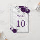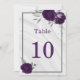 royal purple flowers with some silver grey leaves silver faux foil geometric table number card