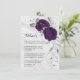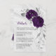 romantic royal purple flowers and silver grey leaves against marble background details enclosure card.