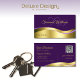 The design features a noble shimmery wavy gold decor with fine light lilac colours, on a plain royal purple background.