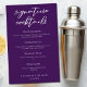This royal purple wedding signature cocktails menu features beautiful white typography on a solid deep violet for an evening ceremony in the winter. Minimalist script and a bold colour makes your bar print pop and stand out from the crowd.