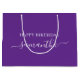 Royal Purple White Elegant Script Signature Name Large Gift Bag