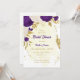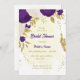 Romantic royal purple & white flowers with gold leaves botanical bridal shower invitation