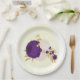 Romantic royal purple & white flowers with gold leaves botanical wedding paper plate.