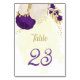 royal purple white flowers gold wedding table numb number