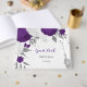 Romantic royal purple & white flowers with silver leaves botanical wedding guest book