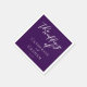 This royal purple wedding napkin features beautiful white typography on a solid deep violet for an evening ceremony in the winter. Minimalist script and a bold colour makes your reception decor pop and stand out from the crowd.