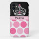 Printed gemstone iPhone 5 cases with pink girly gemstone bling printed on the case, a royal queen monarchy crown, and monogram space you can personalise with your name or initials. Designed for women or girls and will protect your phone in a stylish way. Colours include purple, black and white.