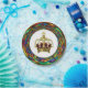 Multicolored plate displaying the royal crown