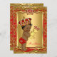 Royal Red Little Prince Crown Baby Shower. Ethnic African American Baby Shower Boy baby shower with toy bear invitation. Elegant gold damask jewel crown.