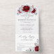 Royal Red White Silver Metallic Floral Wedding All In One Invitation