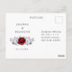 Elegant royal red white silver theme wedding RSVP postcard featuring elegant bouquet of royal ruby red, crimson, silver, pure white colour rose flowers buds and sage green eucalyptus leaves. Please contact me for any help in customisation or if you need any other product with this design.