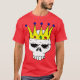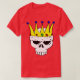 Red t-shirt with illustration of a skull wearing a golden crown with gems