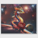 Royal star serpent of the universe. A colourful digital artwork: a vibrant serpent with a golden crown, iridescent scales in red, blue, yellow, and white, adorned with red peonies. The serpent wears a magnificent golden crown, emphasizing its royal presence and power. Its scales are artfully designed into a mosaic of vibrant colours. In the background, a cosmic universe of planets, stars, and nebula clouds – a fascinating mix of nature and space!