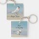 A beachy keychain with a twist. This seabird, a Royal Tern, is preening and posing on a sandy beach while humorously bowing on the back. Or maybe, this seagull is doing some beach yoga. Either way this coastal beach scene is fresh and fun.