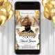 This invitation has a classy vibe with white and gold festive details, gold balloons, and a fancy throne chair in the background. The layout includes a dedicated space for uploading your own photo and to edit your event details. It’s a perfect pick for big celebrations or royal-themed parties. Available for digital download or print directly through Zazzle, it offers both style and convenience.