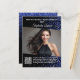 Add the finishing touch to your appearance package with this promotional autograph postcard for titleholders. Versatile as it is beautiful, this design features a sparkling royal blue glitter background to highlight your photo, text, and personal message. Copy and paste your URL into the QR code template to send potential followers to your social media or website instantly. Use the blank space on the back for signing autographs, writing a thank you note, or personal message to fans and supporters.