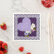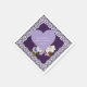 Pretty and feminine white lace background pattern with cute lavender heart and fresh wildflowers. Background colour of a royal plum purple..