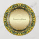 Tribal earthy African vibe Style in richness of colours - Round Wedding Menu or Program - that would look great placed on the wedding guest plates. Theme : gold, yellow, dark green and bits of cherry red colours plus Moroccan, arabesque, afrikan, middle eastern, alternative, Batik, eastern. ★ . ★ . ★ Customisable double sided wedding reception luncheon or dinner menu with other side of card with elegant style layout for bride and groom's names, wedding dates and monogram / initials. Personalise with your special event info. I have added text using the curved style on both sides of this beautiful round menu to make it easy for you. If you don't need it, just delete (leave the space blank).