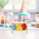 This highball drinking glass has colourful illustrations of fantasy game style dice with 4-sided, 12-sided and 20-sided dice. Above the graphic is a spot to add a name or other custom text. Perfect for fans of different RPG games and board games. The illustrations and text appear on both sides of the glass.