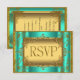 RSVP Reply Response Jade Green Blue Gold Birthday Anniversary Wedding Engagement Elite Elegant Birthday Party Gold 21st, 50th 40th, 30th, 60th, Birthday Party Gold womans Girl, Couple. Invitation Template Formal Use for any event invitation Customise to change age and details. Also can be used for Quinceanera 15th and Sweet 16 invites