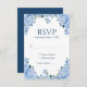 Blue roses wedding RSVP card design; ideal floral design for weddings, anniversaries, engagement or any party. Matching stationary available.