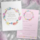 Double-sided simple modern watercolor boho feathers and beads mother blessing wreath art RSVP. Customise with your own name and reply details. White background on front and light pink on the reverse. Pretty colourful shades of a circle of stringed feathers and glass style beading. Other matching items available. Original watercolor art and design by Sarah Trett for www.mylittleeden.com