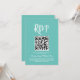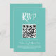 A minimal Mint Green and white style wedding RSVP that allows you to reserve your spot at the party by using a QR-code. Use google to find a free QR code generator. You can then generate a code for your Facebook page, website, or personalised directory for fulfilling your reserved spots for your event.