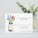 3.5x5 rsvp card: Perfect for a country style wedding or maybe you just love Mason Jars! Old vintage Mason Jar hanging on a hook with country wildflowers. A wonderful light grey background colour with black drawing of a Mason Jar filled with country wildflowers. If you have any questions on this design or want a colour change please email me paula@labellarue.com Also check for the MAIN INVITE, RECEPTION and GUEST SEATING Cards to match!