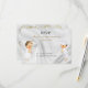 Matching RSVP card for baptism, christening, communion invitation in white and gold with boy & girl.