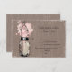 Perfect for a country style wedding or maybe you just love Mason Jars! Old vintage Mason Jar hanging on a hook with fireflies flying around.A Vintage distressed background (colour Autumn Brown DS321-9c) with the hanging Mason Jar and wildflowers in colours of shades of pale light pinks. If you have any questions on this design or want a colour change please email me paula@labellarue.com IF YOU NEED A MENU CHOICE ADDED OR ADDITIONAL INFORMATION LET ME KNOW. Also check for the WEDDING INVITATION & RECEPTION card to match!