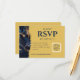 An RSVP card where your guests can scan a QR code or follow the link to your website to respond to your invitation. This is part of a collection of navy and gold themed wedding stationary and more!