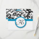 Black and White Damask Floral with Bright Aqua Trim-Perfect for all your invitations and party announcements. Choose from six paper types and nine colours. Vibrant, full-bleed, full-colour printing and free two sided printing. Each invitation comes with a white envelope. Style and Size: 4.25" x 5.5" Paper Type:Linen. If you would like a glossy finish order the basic, linen or metallic papers (glossy finish on front side only) - for a matte finish order recycled, felt or speckled.