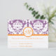 Royal Black Damask Wedding RSVP Response Cards Shown with the beautiful paper colour showing which is felt - you choose background colour from almost 200 colours and papers which alter the colours so click on customise and create your one of a kind invitation! shown with coral and lilac fonts - you choose colours in fonts as well - if you would like a glossy finish (glossy on front side only) order the basic, linen or metallic papers - for a matte finish order recycled, felt or speckled.