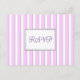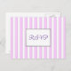Custom RSVP response postcards with a simple striped background pattern of light and dark pink on white with custom script and block letters. Click Customise it to change fonts, sizing, background colours and more, even save your design for later.