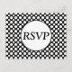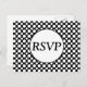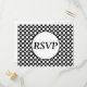 A custom RSVP engagement or party postcard with a background pattern of white polka-dots on black with custom italic and block letters. Click Customise it to change fonts, sizing, background colours and more, even save your design for later.