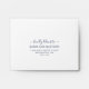 Elegant white RSVP envelope with beautiful purple and blue floral detail inside coordinating our "Purple and Blue Blossoms" collection invites. Envelope are sold in bulk with the same identical couples names, ampersand and address printed on the front in a contemporary elegant design. Delight your guest as they open the envelope to find exquisite floral detail inside. NOTES: 1) the default "A2" envelope size selected fits our coordinating 3.5" x 5" RSVP card size, if you make changes on the RSVP card size, please make sure to select the correct RSVP envelope size (see each envelope size measurements explained on product page bottom left area), 2) Option to choose paper type from basic paper or linen. Envelope design with your RSVP return address information along with delicate "Kindly deliver to:" phrase in modern hand written calligraphy on the front. Part of our "Purple and Blue Blossoms" collection with a variety of coordinating products available including RSVP cards, envelope seal and address labels. Visit the entire collection at: https://www.zazzle.com/collections/purple_and_blue_blossoms_collection-119752419948427787