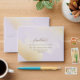 Elegant purple and golden yellow brush strokes self- addressed RSVP envelope. Ability to add your name(s) and address or to erase from text boxes to add later at home. Graceful modern hand written calligraphy details. Outside in pale purple with yellow, gold metallic hues brush strokes, while inside in white with yellow gold hue brush strokes, Note: typography is not in real foil, but rather print in a golden hue. Part of our "Purple and Gold Brush Strokes Wedding" collection with a variety of coordinating products available.