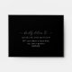 Elegant black self- addressed RSVP envelope. Ability to add your name(s) and address or to erase from text boxes to add later at home. Graceful modern hand written calligraphy details. Ability to change inside as well outside background colour to any other deep tone by selecting customise further and adding a different colour into "rectangular" shape covering all "inside background" or "outside background" layers. Part of our "Elegance Minimal Black and White Monogram Wedding" collection with a variety of coordinating products including RSVP cards.