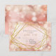 RSVP Return Response Card with white envelopes. Geometric polygon gold frame creates modern meets romantic! Simple yet elegant bokeh sparkle, twinkling lights background is paired with a minimalist contemporary typography layout for your wedding invitation text. Copyright, all rights reserved.