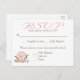 This cute RSVP postcard features a cartoon image of a pair of sweet brown cartoon lovebirds snuggling in a floral nest with hearts and flowers highlighted against a pastel pink background. You can customise the card with or without meal choices. You can also change font styles and colours.