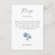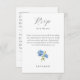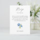 Chic and elegant blue hydrangea RSVP enclosure card, featuring a beautiful floral design along with guest's meal selection, attendance, response date, couple name, wedding website address and favourite song. The card conveniently makes provision for 2 guest names and there respective selections. This card is stylish, elegant with youthful undertones. This item forms part of a wedding suite which includes invitations and other products. Customise to make it your own.
