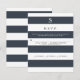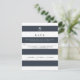 COLOR PALETTE: navy blue and white DESIGN COLLECTION: Matching vertical design RSVP response cards with menu choices (simply delete or replace the text on that line if you don't need them). With a chic and trendy design theme of wide stripes, this invitation has a contemporary trending style. Each layer of text alternates with the dark blue and white for a simple yet stunning effect. Bold graphic, yet stylish and fashion forward. We have a complete product set to coordinate. Monogrammed initial and rsvp information is easy to customise with the personalisation template fields.