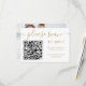A simple elegant gold script RSVP enclosure card featuring your own QR code and wedding website details set in chic typography and special photo on the reverse. Designed by Thisisnotme©
