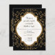 Matching RSVP Response return by mail card including white envelope. NOTE: This is a flat printed invitation, there is no real glitter or metal foil used. Effects are graphically produced. DESIGN COLLECTION: Beginning with hand drawn script swirl calligraphy flourishes that have been turned into a graphic glitter effect and paired with a double border quatrefoil style frame also in golden shimmery glitter effects. Inside the frame and behind your easily customised text template is a sunburst hand drawn line design. On the reverse side is a place to put your monogram initial inside the glittery starburst design. This invite is the perfect marriage of sweet, romantic sentimental design and modern elegance. Easy to customise for any occasion and a complete set of products are available. COLORS: ebony jet black, creamy off-white and digital gold glittering look.