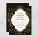 Matching RSVP Response return by mail card including white envelope. NOTE: This is a flat printed invitation, there is no real glitter or metal foil used. Effects are graphically produced. DESIGN COLLECTION: Beginning with hand drawn script swirl calligraphy flourishes that have been turned into a graphic glitter effect and paired with a double border quatrefoil style frame also in golden shimmery glitter effects. Inside the frame and behind your easily customised text template is a sunburst hand drawn line design. On the reverse side is a place to put your monogram initial inside the glittery starburst design. This invite is the perfect marriage of sweet, romantic sentimental design and modern elegance. Easy to customise for any occasion and a complete set of products are available. COLORS: black, creamy off-white and digital gold glittering look.