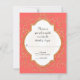 Matching RSVP Response return by mail card including white envelope. NOTE: This is a flat printed invitation, there is no real glitter or metal foil used. Effects are graphically produced. DESIGN COLLECTION: Beginning with hand drawn script swirl calligraphy flourishes that have been turned into a graphic glitter effect and paired with a double border quatrefoil style frame also in golden shimmery glitter effects. Inside the frame and behind your easily customised text template is a sunburst hand drawn line design. On the reverse side is a place to put your monogram initial inside the glittery starburst design. This invite is the perfect marriage of sweet, romantic sentimental design and modern elegance. Easy to customise for any occasion and a complete set of products are available. COLORS: Bright coral orange pink, creamy off-white and digital gold glittering look.