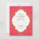 Matching RSVP Response return by mail card including white envelope. NOTE: This is a flat printed invitation, there is no real glitter or metal foil used. Effects are graphically produced. DESIGN COLLECTION: Beginning with hand drawn script swirl calligraphy flourishes that have been turned into a graphic glitter effect and paired with a double border quatrefoil style frame also in golden shimmery glitter effects. Inside the frame and behind your easily customised text template is a sunburst hand drawn line design. On the reverse side is a place to put your monogram initial inside the glittery starburst design. This invite is the perfect marriage of sweet, romantic sentimental design and modern elegance. Easy to customise for any occasion and a complete set of products are available. COLORS: Bright begonia, fuchsia hot pink, creamy off-white and digital gold glittering look.